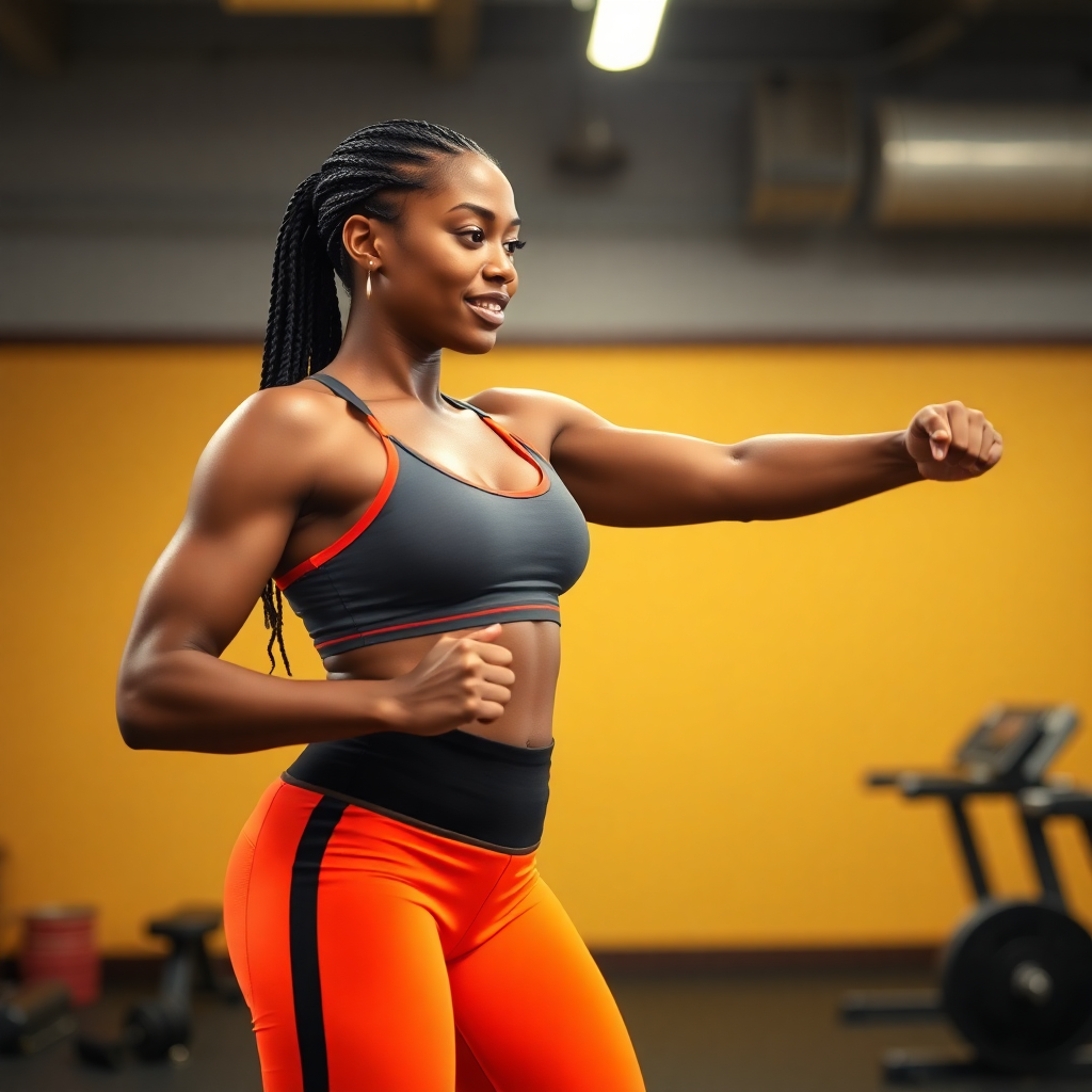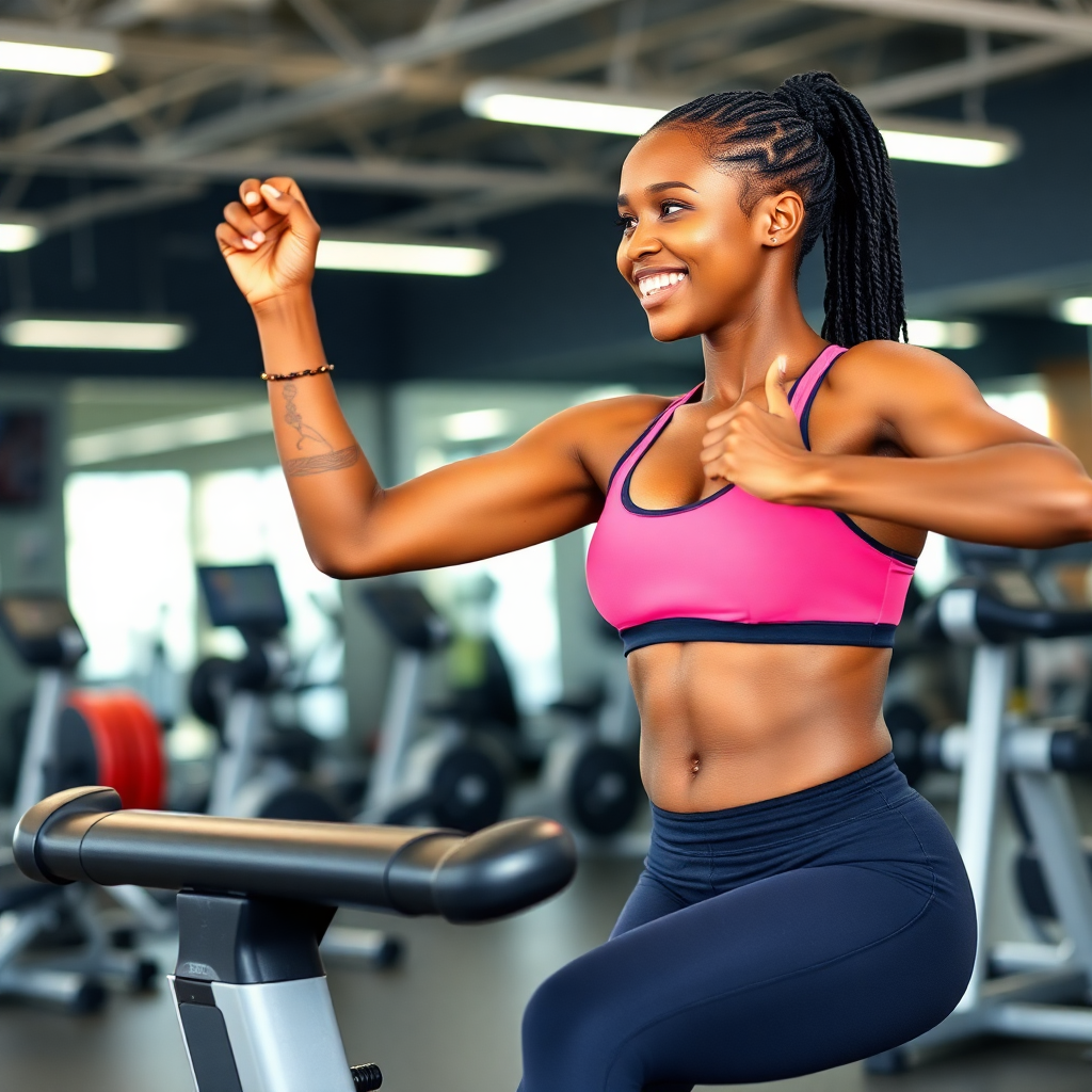 I need a fitness Xhosa speaking woman in a gym doing exercises